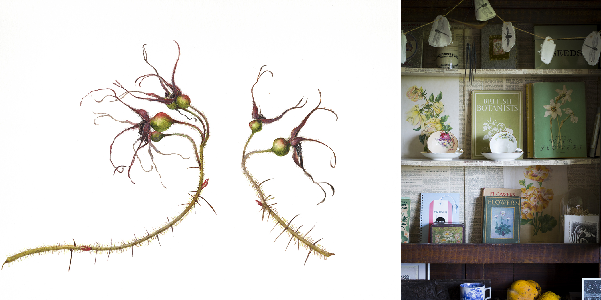 www.wildlybotanical.co.uk is the website of Helga Hislop. I am lucky that Helga has been my friend and mentor now for nearly 20 years. Her exquisitely simple work captures every detail yet remains clear and alive; I am the lucky owner of quite a few of her pieces on vellum.